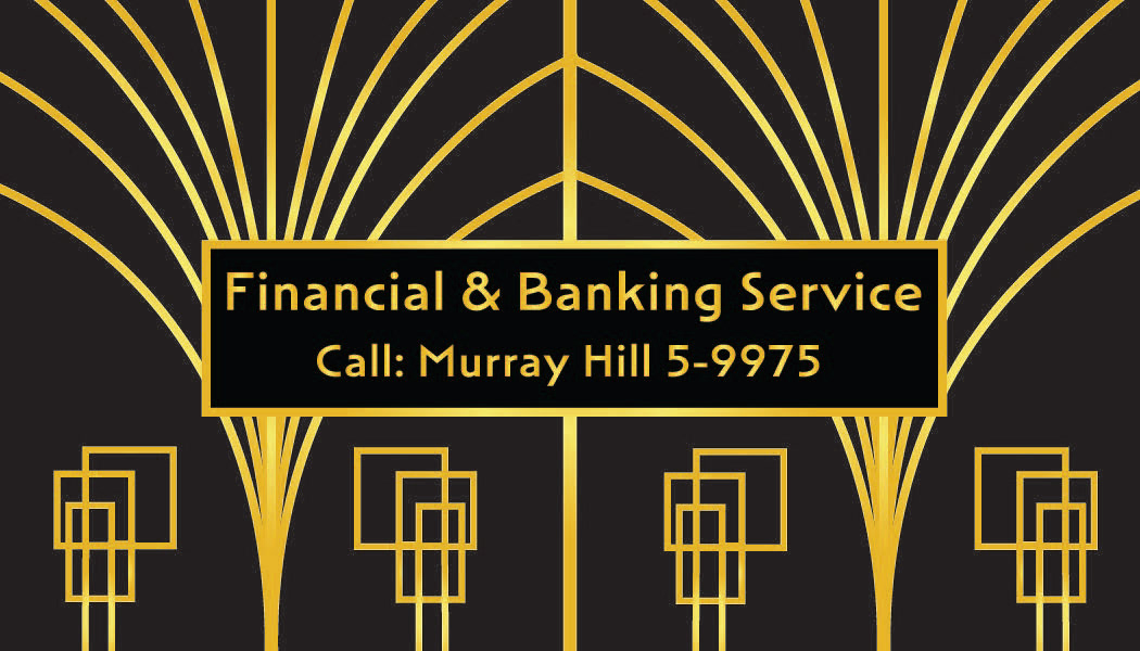 For this project, I designed a business card for a mock company with a 1920s art deco theme. The mock business is everyone's favorite business, financing.
