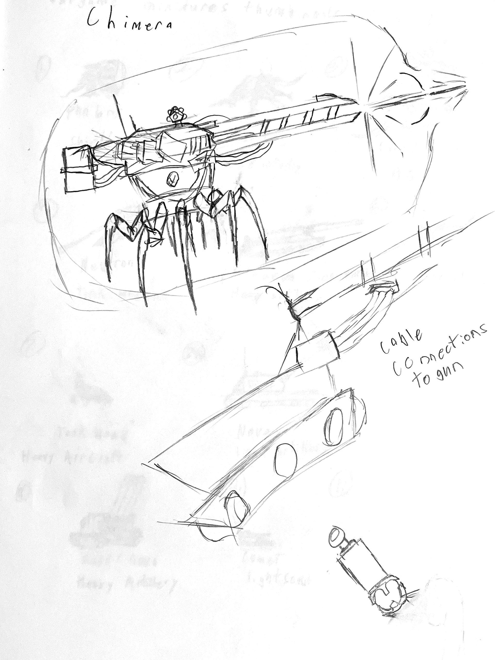 A concept sketch of what this bad boy looks like and what it is going to do once I start animating it.
