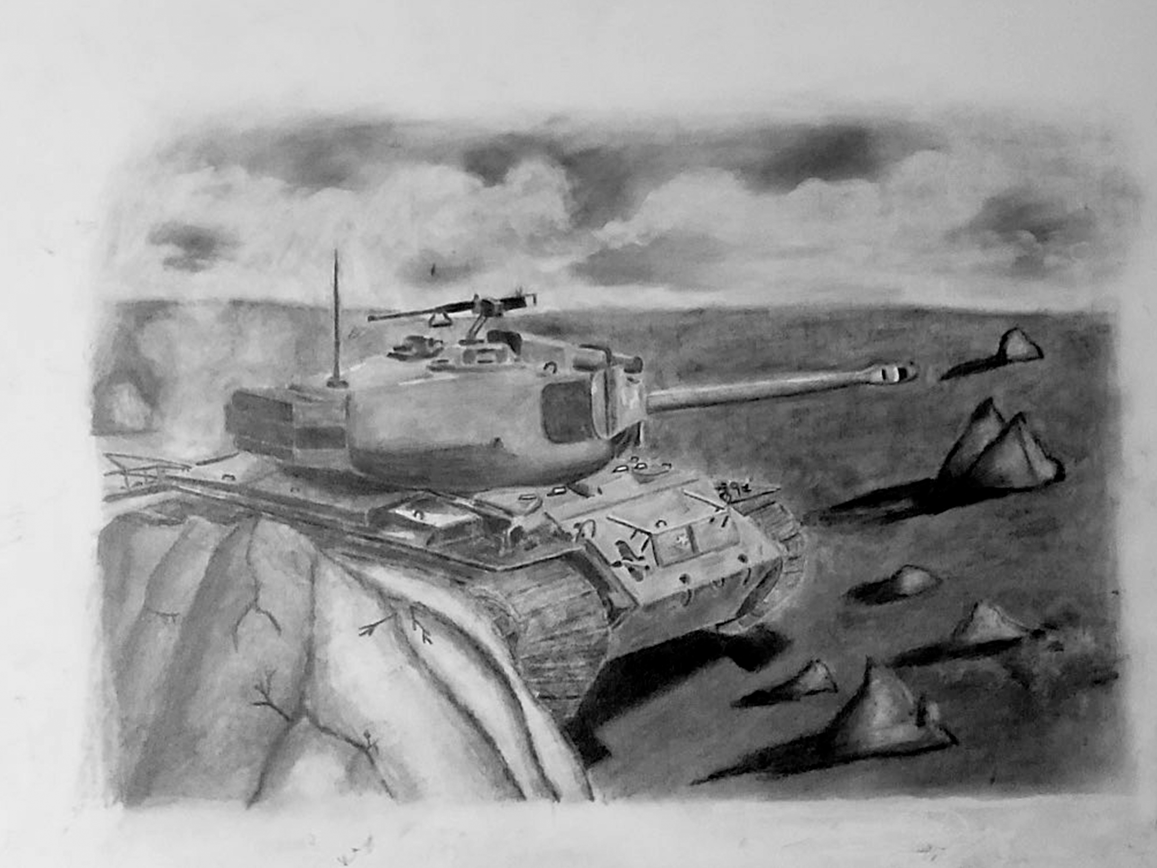 A graphite drawing of a T26E4 "Super Pershing", one of my favorite tanks.